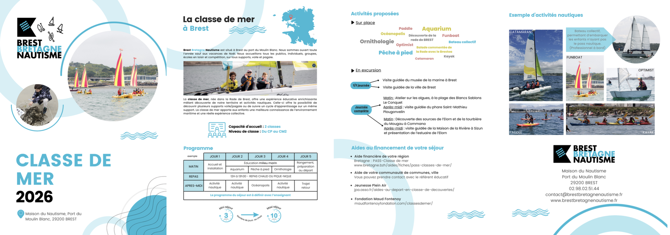 « Un immense merci à toute l’équipe de Brest Bretagne Nautisme et à Alicia en particulier pour votre accueil, l’organisation sur place, les cours de voile et les visites de Brest. Apprendre la voile dans la rade de Brest était très rassurant pour les enfants.